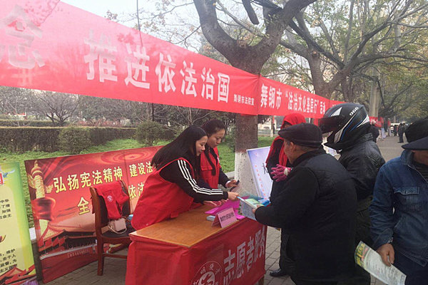 为进一步弘扬宪法精神,深入开展法制宣传教育,12月4日,舞钢法院组织优秀青年志愿者到鑫源广场开展宣传活动。