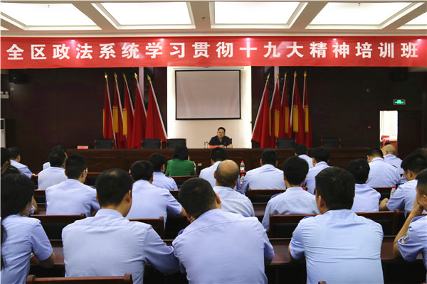 为深入贯彻落实党的十九大精神,推动“两学一做”学习教育常态化制度化,坚定“四个自信”,树牢“四个意识”,提高政法干警履职能力,5月17日上午,石龙区人民法院党组书记、院长武中立作为主讲人,在石龙区政法系统学习贯彻党的十九大精神培训班开讲,为全区政法干警讲授了题为《深入学习领会党的十九大精神,以时不我待之紧迫感扎实推进司法体制改革》的报告。石龙区委常委、政法委书记白云霞,区人民检察院检察长王全生,区公安局局长王泉水出席报告会,全区政法部门干警和政法委机关全体工作人员参加了此次报告会。