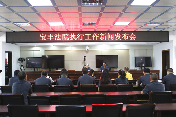 5月29日,宝丰县人民法院召开正确理解和区分执行难、执行不能新闻发布会,并通报一起“执行不能”典型案例。院党组成员、政治处主任赵占增主持发布会,党组成员、执行局长张建立参加发布会。