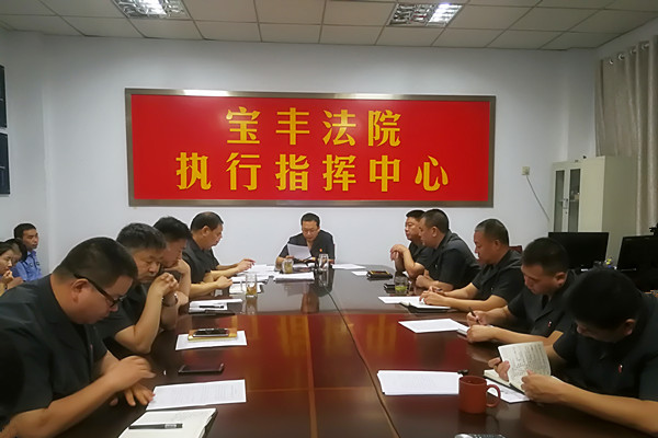 6月22日上午,宝丰法院召开“基本解决执行难”工作推进会,总结2018年上半年执行工作情况及存在的问题,并对下一阶段工作进行部署安排。党组书记、代院长沈伟轩,党组成员、执行局局长张建立及执行局全体干警参会。