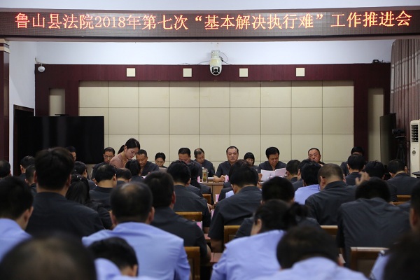 9月6日下午,河南省鲁山县人民法院党组书记、院长王宏伟组织召开2018年第七次“基本解决执行难”工作推进会。全体班子成员、各部门负责人、执行局和法警队全体干警参加会议,总结上月战令完成情况,下达9月战令,吹响基本解决执行难第三评估前的“集结号”。