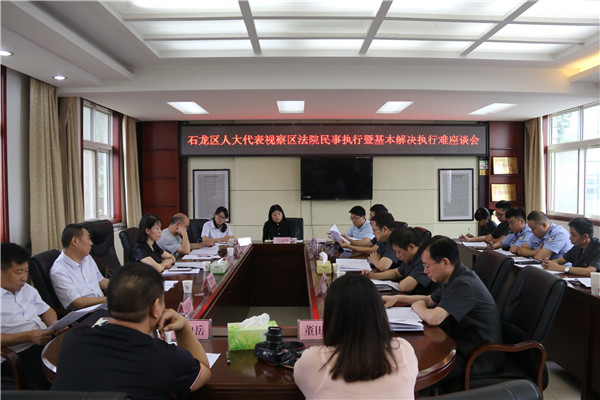 随后,在召开的座谈会上,武中立就基本解决执行难工作主要情况,目前存在的困难和问题及下一步工作打算等方面进行了汇报。代表们对石龙区法院执行工作给予了充分肯定,并从提升执行信息化建设、加大执行宣传力度、发挥执行联动机制作用、妥善化解信访案件、推进综合惩戒全覆盖、加强队伍建设、营造更优司法环境等方面提出了切实可行的建议和意见。