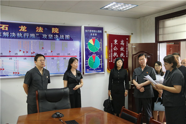 9月13日上午,石龙区人大常委会副主任季梅香带领部分人大代表到石龙区法院就民事执行暨基本解决执行难工作进行专项视察。石龙区法院党组书记、院长武中立陪同视察。
