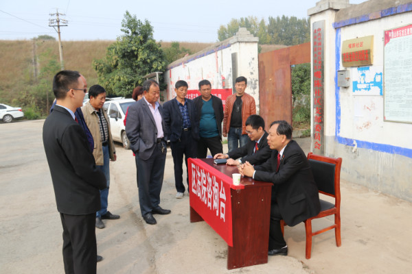 在贫困村设立法律咨询点:安排2名资深法官和3名普法宣传干警在嘴陈社区开展法律咨询活动。活动现场设立了法律咨询台,对前来咨询的群众就就换届选举、继承、婚姻、借贷等相关法律知识作了一一讲解,深入浅出讲授了《宪法修正案》及《继承法》等相关法律知识。将普法宣传工作与精准扶贫有效结合,注重开展“法治扶贫”工作,让群众了解相关法律法规,引导广大群众知法、守法、用法,通过正常的法律途径合理表达诉求,杜绝因为违法犯罪而致贫、返贫等现象的发生。