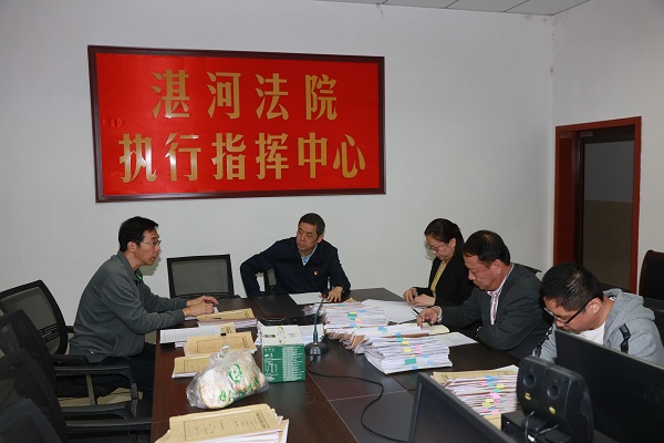 在分别听取两个基层法院的工作汇报后,针对近期执行质效指标情况及执行干警如何克服执行工作瓶颈等问题,刘冠华和两个基层法院院长、执行局长和其他执行工作人员进行了深入交流探讨。他指出,“基本解决执行难”的总攻号角已经吹响,现在正是挺身冲锋的时刻,大家要统一思想,团结奋战,瞄准目标齐发力,聚焦问题共施策,进一步加大执行工作力度,确保如期打赢执行攻坚战,让人民群众切实感受到司法的公正、高效、权威。刘冠华院长要求,基层法院要强化责任担当,狠抓各个环节的落实;要穷尽各项措施,用好用足强制措施,最大限度保障申请执行人权利;要创新工作方式,做到廉洁执行,规范执行;要做到心中有数,切实弄清指标要求,摸清底数,逐案研究,补齐短板,确保如期打赢“基本解决执行难”这场硬仗。