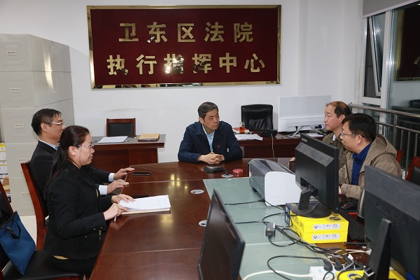 10月21日晚间,平顶山市中级人民法院党组书记、院长刘冠华先后到湛河区人民法院、卫东区人民法院对 “基本解决执行难” 攻坚工作进行督查指导。晚上7时到10时,刘冠华分别察看了湛河、卫东法院执行指挥中心,听取了两个法院执行攻坚战推进情况汇报,对下一步工作提出明确要求,并对周末加班的干警们进行了慰问。
