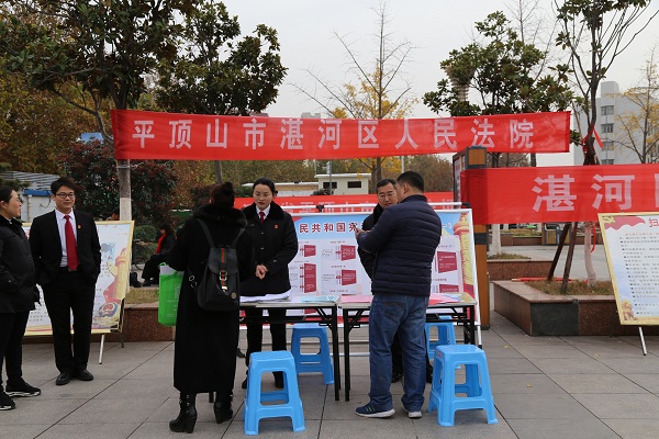 值第五个国家宪法日和首个国家“宪法宣传周”到来之际,12月4日上午,湛河区法院组织干警到市区火车站广场开展宪法宣传活动。