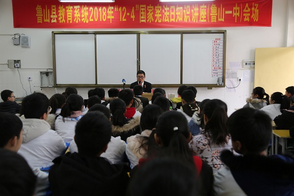 少审庭专门到鲁山县一中为孩子们送去了一堂生动的法制教育课,在近半个小时的讲课中,授课法官结合宪法有关规定,融入自身办理的鲜活案例,深入浅出的道出了县法院是写满公民权利的宣言书的道理,希望大家要主动学习宪法,维护宪法和法律权威,同时也要注意保护自身合法权益,避免不法侵害。讲课结束后,法官们还专门坐下来与大家一起学习宪法规定和法制宣传教育手册的有关内容,回答孩子们的法律咨询。