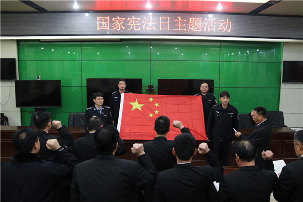 为大力弘扬宪法精神,维护宪法权威,树立尊崇宪法、信仰法治的理念,不断增强法院干警的职业尊荣感、责任感和使命感。下午15时30分,石龙区法院组织全院干警进行了宪法宣誓活动。当会场奏响国歌,面对鲜艳的五星红旗,在石龙区法院党组成员、副院长王广跃的领誓下,全体干警高举右手庄严宣誓,做出了庄严而神圣的承诺。法官代表表示:“作为一名法官,一定牢记庄严的誓词,将习近平总书记全面依法治国新理念、新思想、新战略入脑入心,带头学习宪法、忠于宪法、遵守宪法、维护宪法,不忘初心,继续前进,为全面推进依法治国、加快建设社会主义法治国家贡献出自己的一份力量。”
