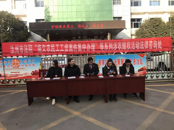 近年来,汝州法院一直致力于全力维护农民工合法权益各项活动。通过建立诉讼绿色通道、云送达等方式,快立、快审、快执涉农民工维权案件,全力保障农民工合法权益;组织干警到企业举办法治讲堂和法律知识讲座,为农民工维权保驾护航;强化宣传报道,营造农民工维权的良好舆论氛围。在涉农民工案件的执行中,汝州法院每年都会开展为农民工讨薪的集中执行活动,努力维护农民工的合法权益。