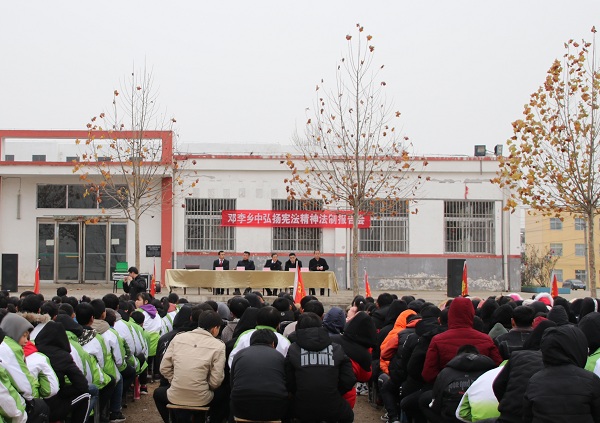 12月6日下午,叶县法院一行4人走进校园,为邓李乡中学近两千名师生上了一堂生动活泼的法制教育课,以实际行动推进平安校园建设。