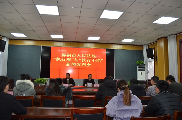 12月25日,舞钢市人民法院召开执行“冬日攻坚”新闻发布会,会议由舞钢市人民法院新闻发言人尹红国主持,舞钢电视台、舞钢信息等媒体各界应邀参加新闻发布会。