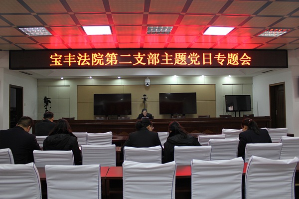 1月4日,宝丰县人民法院各党支部开展主题党日活动,全体党员集中学习了《中国共产党支部工作条例(试行)》和宝丰县委书记许红兵《在县法院调研座谈会上的讲话》精神。