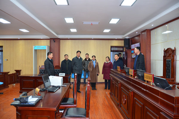 1月16日下午,平顶山市中院领导赵学军一行三人来到郏县人民法院,调研指导信息化建设工作并召开座谈会。郏县人民政府副县长吴红强,郏县法院党组书记、院长宋景婵,党组成员、副院长楚军荣等陪同调研。