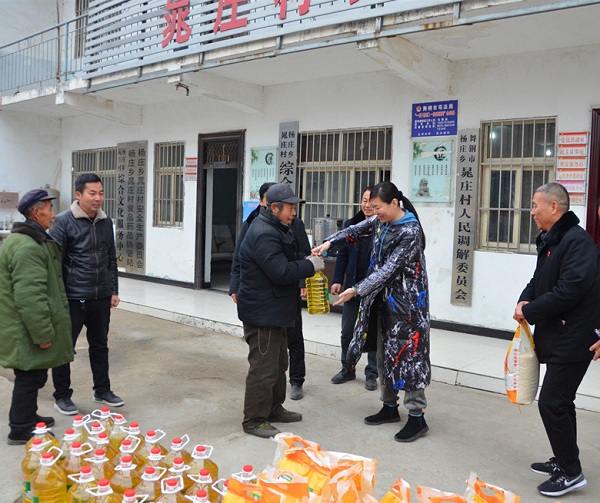 新春佳节来临之际,为积极鼓励并更好的引导社会力量参与精准扶贫,1月27日上午,舞钢法院联合越野e族平顶山兄弟团在晁庄村举行扶贫济困捐赠仪式,舞钢市市领导李广霞出席仪式并陪同慰问。