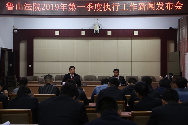 4月1日上午,鲁山县人民法院召开2019年第一季度执行工作新闻发布会,鲁山法院副院长张燕伟、执行局局长胡春生出席会议,应邀鲁山县人大代表、政协委员、人民陪审员、律师代表和媒体记者参加会议。