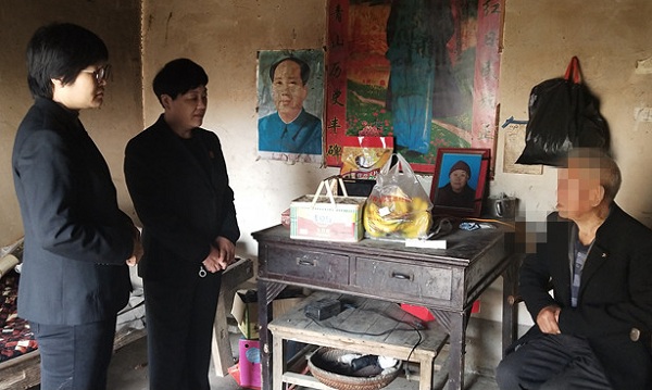 4月11日,郏县法院中心法庭两位法官带着水果、鸡蛋等慰问品前去看望年逾八十的娄某。在破旧简陋的村房内,娄某对着前来探望的法官痛哭流涕、连声道谢。