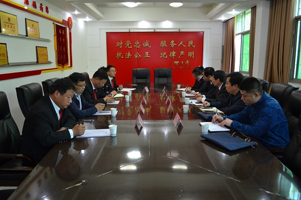 4月18日上午,鲁山县政法委副书记赵功品、鲁山法院审委会专职委员刘国强等一行5人到汝州市法院交流学习“道交一体化”中心建设工作。