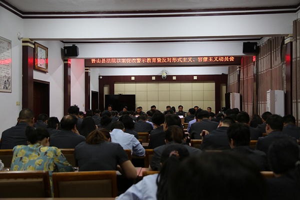 5月15日下午,鲁山县人民法院召开以案促改警示教育暨反对形式主义、官僚主义动员会。鲁山法院党组书记、院长王宏伟出席会议并讲话,全体班子成员及干警参加会议。