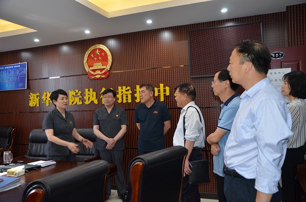 5月29日下午,平顶山市人大常委会委员、内司工委主任陈聚成带领调研组一行12人来到平顶山市新华区法院调研刑事审判工作。新华区人大副主任刘建新,新华区法院党组书记、院长杨红卫等陪同调研。调研组一行先后实地查看了新华法院诉讼服务中心、立案大厅、刑事审判法庭、羁押室、执行指挥中心,并听取相关介绍。