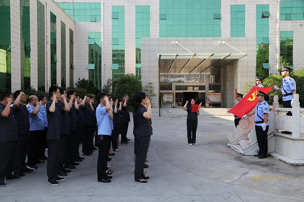 7月1日,湛河区法院举行迎“七一”升国旗仪式暨重温入党誓词活动,迎接中国共产党98岁华诞。湛河区法院全体党组成员及全院干警参加。