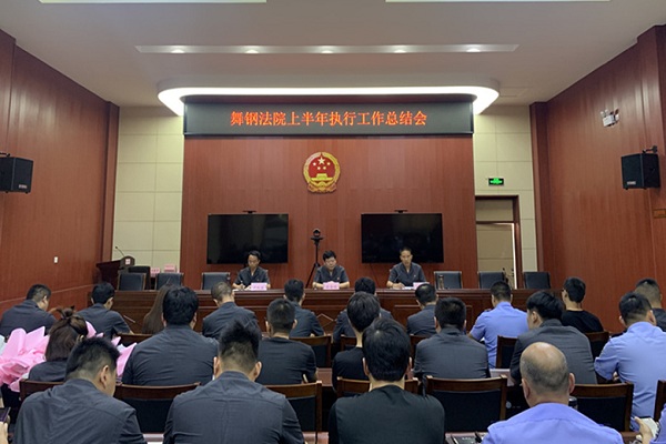 为更好地总结2019年上半年执行工作,并对下半年执行工作进行整体部署,7月8日上午,舞钢市人民法院执行局召开了上半年执行工作总结会议。会议由舞钢法院党组成员、执行局局长杨红波主持,舞钢法院院党组书记、院长徐合林出席,执行局全体干警参加。