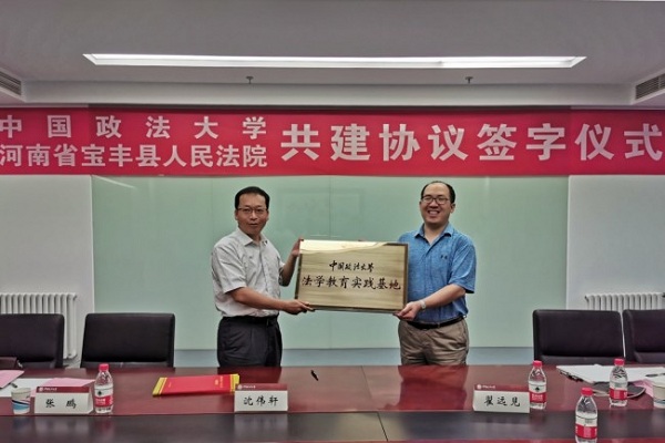 为深入贯彻落实司法改革和法学教育改革的指导思想,促进司法审判与法学研究的共同发展、法学教育与司法实践的有机结合,7月5日,宝丰县人民法院与中国政法大学共建合作协议签署仪式在法大昌平校区举行。宝丰法院党组书记、院长沈伟轩,党组成员、政治部主任赵占增,法大教务处副处长翟远见,法学教育研究与评估中心副主任刘坤轮等参加了仪式。