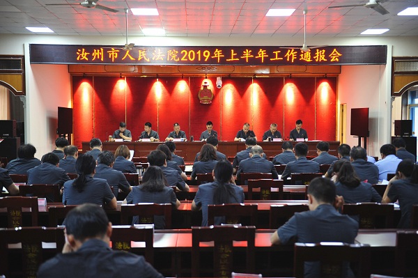 7月8日下午,汝州市人民法院在一号审判庭召开2019年上半年工作通报会,会议对上半年工作进行全面总结,分析弱势指标及短板工作,并对下一步工作进行了安排部署。会议由党组书记、院长杨长坡主持,全体干警参加会议。
