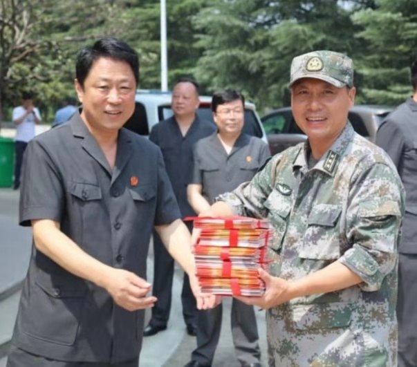 7月22日上午,平顶山市中级人民法院党组成员、副院长刘鹏华,中院机关党委书记赵学军,新华区人民法院党组书记、院长杨红卫带领两级法院涉军维权合议庭人员,来到解放军驻平某部队慰问驻地官兵并开展“送法进军营”活动。两级法院为官兵送去了普法宣传书籍、食用油、方便面等慰问品。
