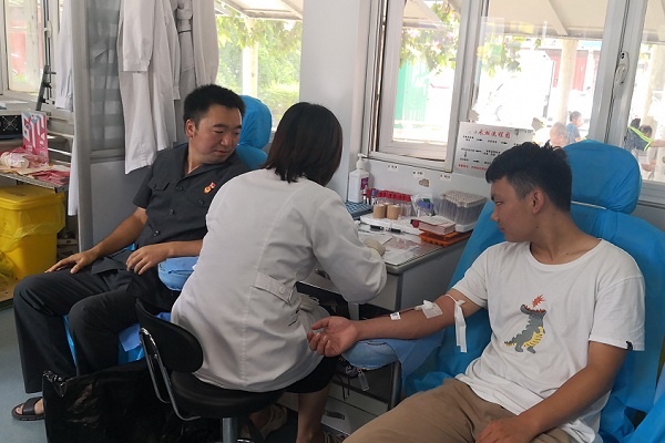7月25日上午,鲁山县人民法院的干警们来到位于鲁阳影剧院门口的义务献血站,进行无偿献血活动。