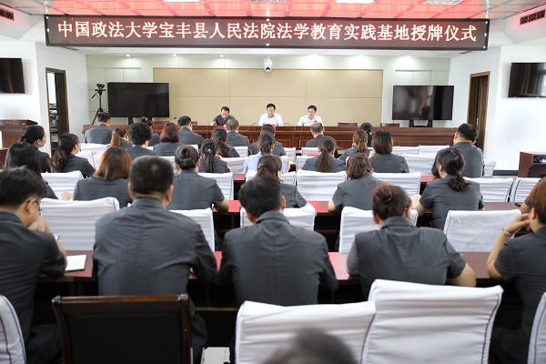 8月19日,宝丰县人民法院与中国政法大学共建“法学教育实践基地”授牌仪式在宝丰法院隆重举行。中国政法大学法学教育研究与评估中心副主任、全国法学教师培训基地办公室主任、教育部高等教育教学评估专家刘坤轮教授,宝丰县委常委、政法委书记桓贯超,宝丰法院党组书记、院长沈伟轩以及宝丰法院领导班子成员和全体干警参加了仪式。活动由沈伟轩主持。