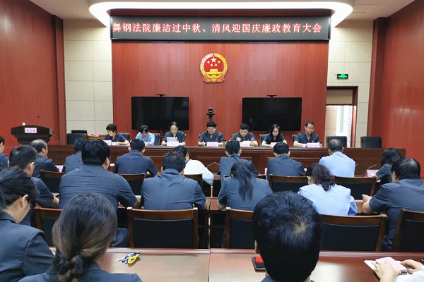9月12日,舞钢市人民法院召开“廉洁过中秋 清风迎国庆”廉政教育大会,为全院干警送上了节前廉政“大餐”,助力营造欢乐祥和、风清气正的节日氛围。