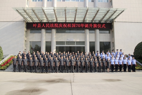 升旗仪式后,叶县法院党组书记、院长王远蒙在讲话中说:在庆祝新中国成立70周年之际,举行升国旗仪式,是要强调全体干警要把爱国、爱岗紧密结合起来,时刻做到政治为先、人民为上、廉洁为本,树立迎接新挑战、接受新任务、战胜新困难的信心和决心,大家要用饱满的热情、充足的干劲和优异的成绩为新中国成立70周年献礼。