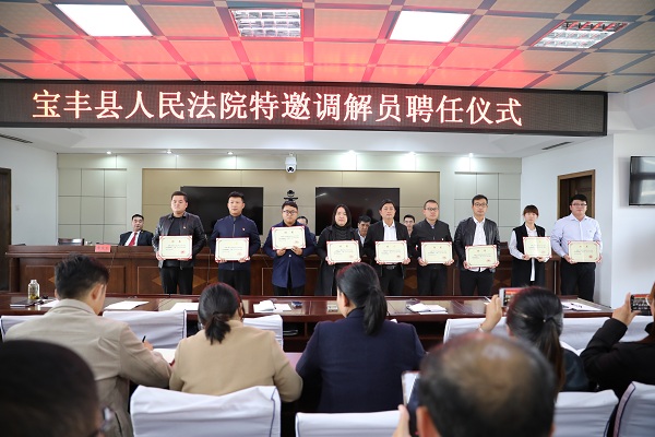 聘任仪式上,宝丰法院党组成员、副院长李庆东宣读了《宝丰县人民法院关于拟聘任王旻昊等24名同志为特邀调解员的决定》,沈伟轩同志为受聘的特邀调解员代表颁发证书,杨庄镇党委政府负责人表示将积极配合法院做好诉前调解工作。