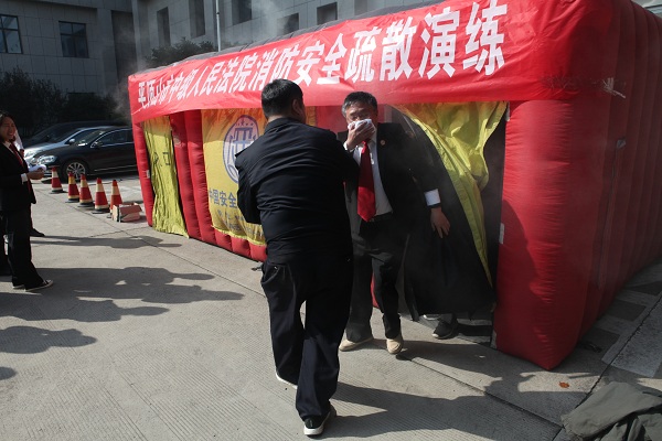 培训着重对近年各地发生的多起重大火灾及安全事故案例予以详析,警示大家牢记事故的原因及教训,号召大家要增强安全防范意识。理论培训后,参训干警在机关后院进行了从滚滚浓烟房间逃离的消防演练,真实感受了火灾现场的处境。