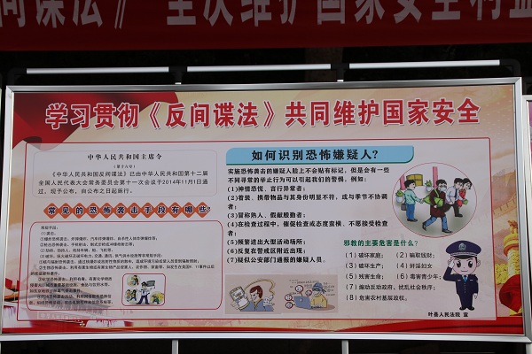 11月1日是《反间谍法》颁布实施纪念日, 为增强广大群众的反间谍意识,构筑坚实的国家安全人民防线,11月1日上午,叶县法院制作宣传横幅、版面和彩页,到叶县县委门口举行《反间谍法》宣传活动。