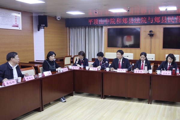 实地走访调研结束后,刘鹏华一行在郏县法院与平顶山郏县嘉星面业有限公司等十余家民营企业的负责人进行了座谈。座谈会上,企业负责人们在充分肯定两级法院工作的同时,结合本企业实际情况,分别就知识产权保护、合同履行、劳动者保护等问题提出了民营企业关心的问题及困惑,并对法院工作提出了意见建议;调研组对相关问题进行了认真解答,并就有关专业性问题提出了法律服务意见。
