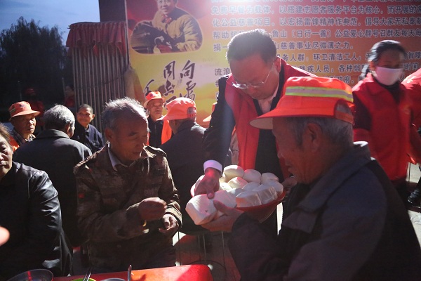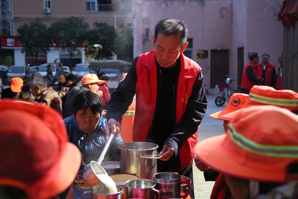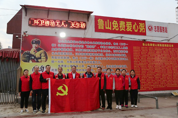 11月1日,鲁山县法院党组书记、院长王宏伟带领部分党员干警开展“多彩主题党日、爱心粥屋志愿服务”活动,向环卫工人献出爱心,传递公益事业正能量。