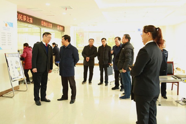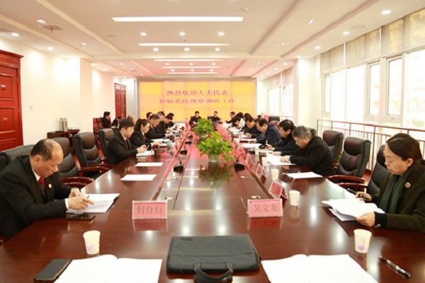 12月11日,卫东区人大常委会党组书记、主任朱孝哲一行十余位市、区两级人大代表莅临卫东区人民法院视察指导工作, 卫东区人民法院党组书记、院长李俊峰陪同视察。