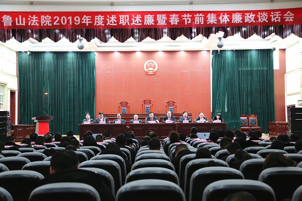 1月8日下午,鲁山县法院召开2019年度述职述廉暨春节前集体廉政谈话会,全面总结回顾了2019年度取得的成绩和经验,表彰工作突出的干警,并对下一步工作进行安排部署。院党组书记、院长王宏伟出席会议并讲话,全体干警以及聘用人员共计200余人参加会议。会议由院党组副书记、副院长林继五主持。