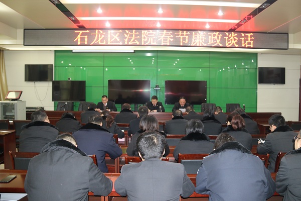 为进一步强化全面从严治党主体责任,贯彻《全市党员领导干部集中开展节前廉政谈话的通知》精神和上级要求,1月13日上午,石龙区法院组织全体干警召开春节廉政谈话会。院党组书记、院长武中立出席会议并作重要讲话。会议由院党组副书记、副院长王耀宇主持。