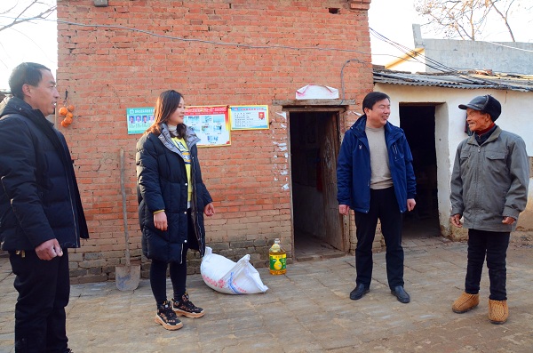 为让贫困群众过一个欢乐、祥和的春节,1月19日下午,郏县法院党组成员、副院长闫向杰受院党组委托分别在驻村第一书记曾晓燕、齐国营的陪同下,先后到冢头镇王寨村、焦南村看望慰问了19户贫困户,给他们送去了面粉、食用油等生活用品,将郏县法院的深切关怀送到了他们的心坎上。
