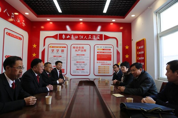 王宏伟院长代表鲁山法院全体干警,就省高院领导对于基层法院干警的关爱深表感谢,表示在新一年的工作中,切实将省高院领导的要求贯彻落实到各项工作中去,用更出色的成绩回报省高院的关心与支持。