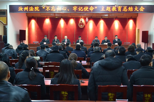 1月22日,汝州市人民法院召开“不忘初心、牢记使命”主题教育总结大会。党组书记、院长扬长坡,市委主题教育第15巡回指导组副组长沈战卿,院班子成员及全体党员干警参加会议,会议由党组副书记、常务副院长袁黎晓主持。