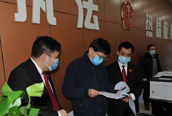 2月17日下午,平顶山市中级人民法院党组书记、代院长王辉到汝州市人民法院检查指导疫情防控和审判执行工作,并对网上立案、网上办案等问题进行调研。汝州市委书记陈天富,汝州市法院党组书记、院长杨长坡及部分班子成员陪同。