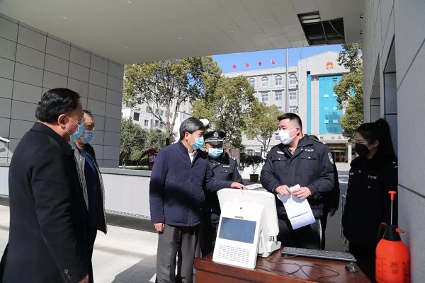 2月18日上午,鲁山县政协主席张振营、县公安局政委温卫杰到县法院实地检查指导疫情防控工作,并送去对法院干警的关心。张振营一行实地查看了门口检查岗、立案大厅等重点防护区域,详细了解了该院采取的疫情防控措施以及近期进行的疫情知识宣传普及工作。