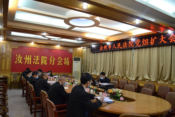 2月24日上午,汝州市人民法院召开党组扩大会议,研究疫情防控和复产复工工作。会议由党组书记、院长杨长坡主持,全体班子成员在该院二楼会议室参会、各部门负责人通过钉钉视频会议平台参加会议。