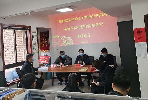 为认真贯彻落实全市优化营商环境的举措部署,立足审判职能,加强法律职业共同体建设,按照院党组统一安排,3月6日上午,市中院党组成员、副院长刘鹏华一行五人到河南恪德律师事务所、河南元瑞律师事务所、河南旭宏然律师事务所走访调研,并与律师代表进行座谈交流,就优化营商法治环境和法院审判工作征求意见建议。