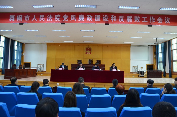 为进一步贯彻落实从严治党、从严治院工作要求,切实加强党风廉政建设和反腐败工作,3月27日下午,舞钢市人民法院召开舞钢法院党风廉政建设和反腐败工作会议,深入学习上级重要会议精神,总结2019年度党风廉政建设和反腐败工作,部署2020年重点工作任务。会议由舞钢法院党组副书记、副院长操玉江主持,舞钢法院党组书记、院长徐合林,舞钢市纪委监委副书记张英歌,舞钢市纪委监委驻舞钢法院纪检监察组组长李新红出席会议,舞钢法院班子成员及全体干警参加会议。
