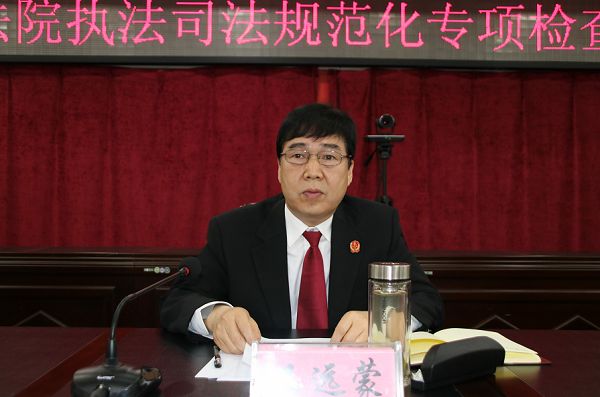 王远蒙院长指出,执法司法规范化水平提升是今年工作的 “重头戏”,也是提升群众满意度和优化法治化营商环境的有力抓手。他强调,一是提升站位、端正态度。自觉把思想和行动统一到县委政法委的决策上来,主动接受县委政法委组织的专项督查、案件评查。对于督查检查组提出的工作要求,认真落实、迅速整改;二是聚焦问题、全面查摆。认真分析执法司法工作中存在的短板问题,对执法司法规范化建设、信息化建设、诉讼服务中心建设、执法办案考评体系、干警工作纪律及工作作风、司法公开、落实便民措施、窗口单位服务等情况进行深入自查,借力推动解决我院执法司法规范化工作;三是立足职能、深入改进。全院干警要利用开展执法司法规范化专项检查的契机,坚持问题导向,抓住关键环节深入改进,真正做到以司法责任制改革助推司法规范化水平提升;四是精心谋划,深入推进。加强统筹协调,形成强大合力,做到两手抓、两不误、两促进,不断完善执法司法权规范化运行机制,提升法院队伍形象出发,使人民群众看到法院规范司法、促进司法公正的决心和行动,努力为全县政法工作科学发展作出应有的贡献。